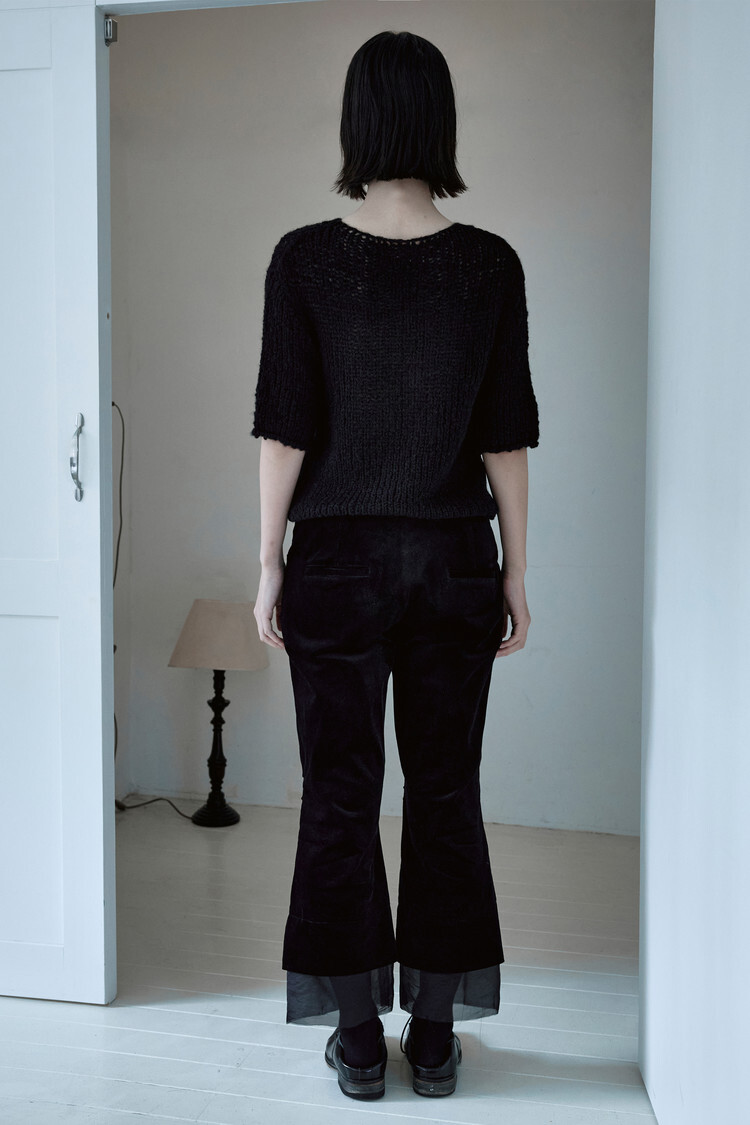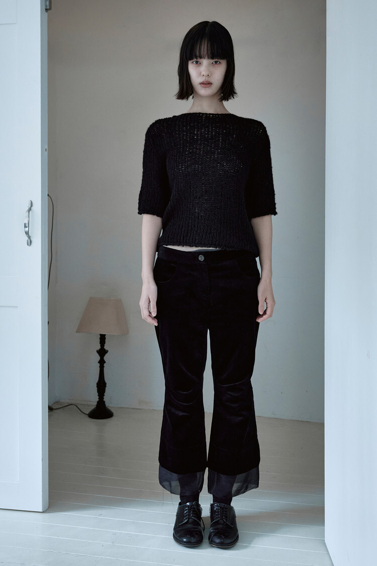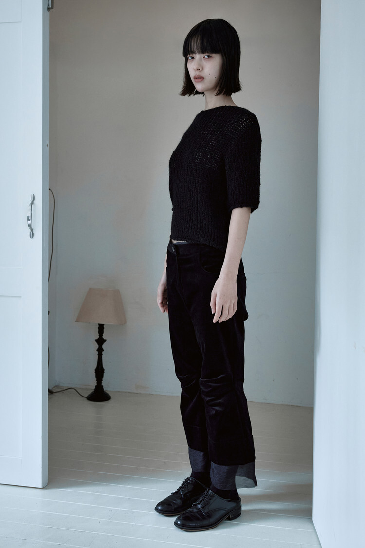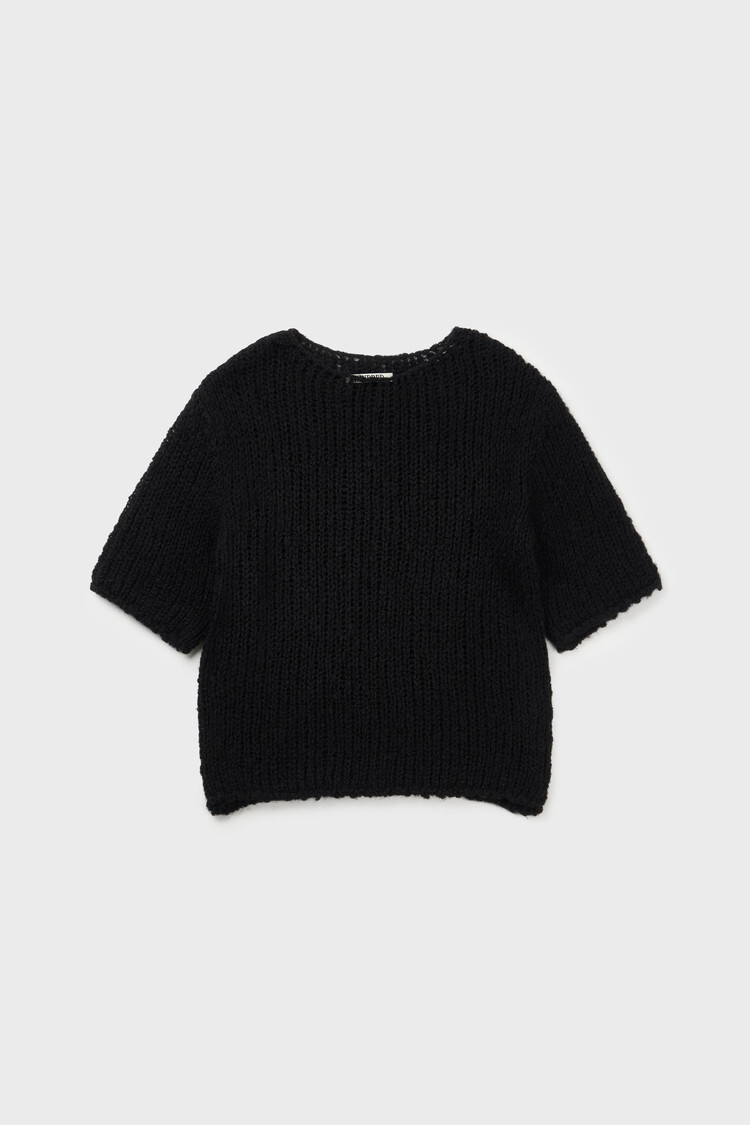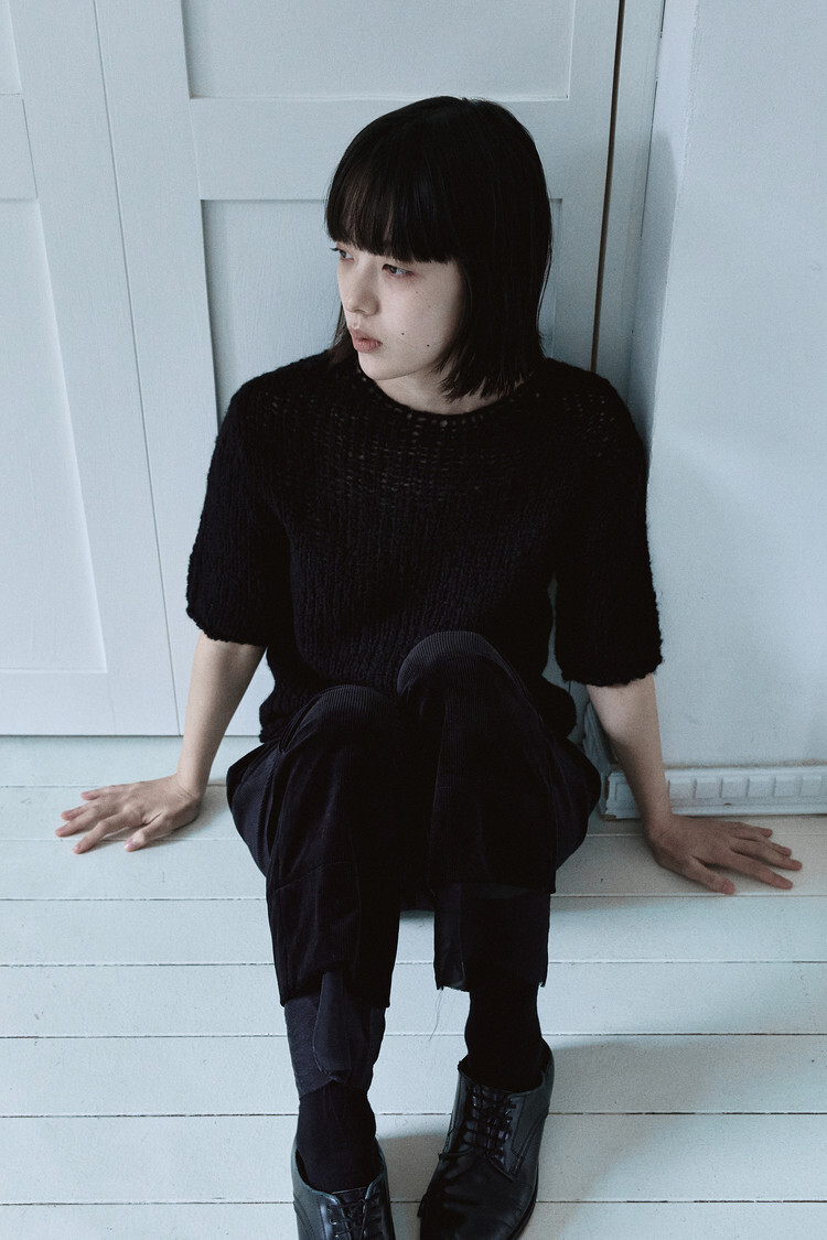 ∙ 헤어리한 소재감의 울 원사를 사용하여 굵은 짜임으로 짜여진 반팔 소매의 니트 스웨터입니다.