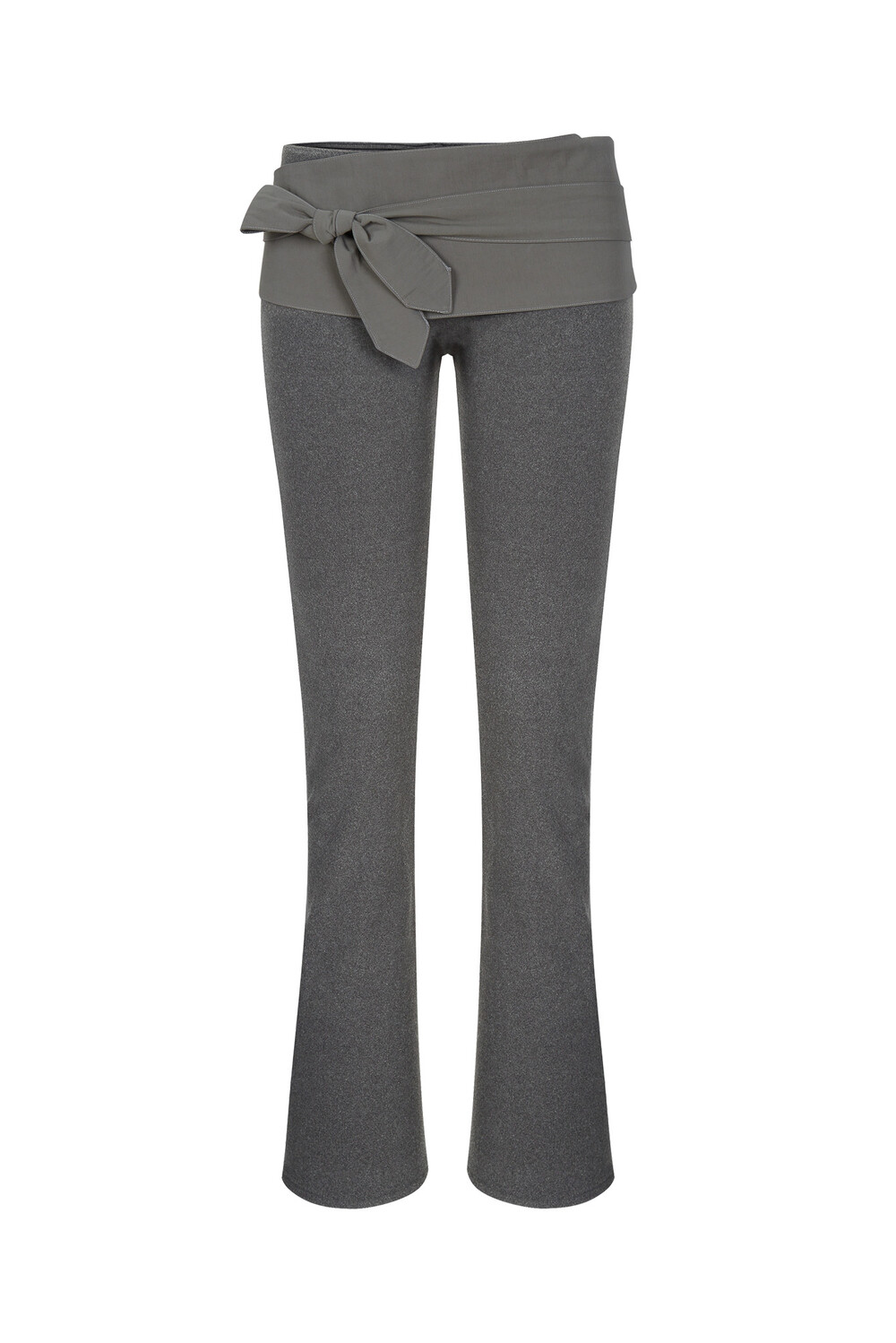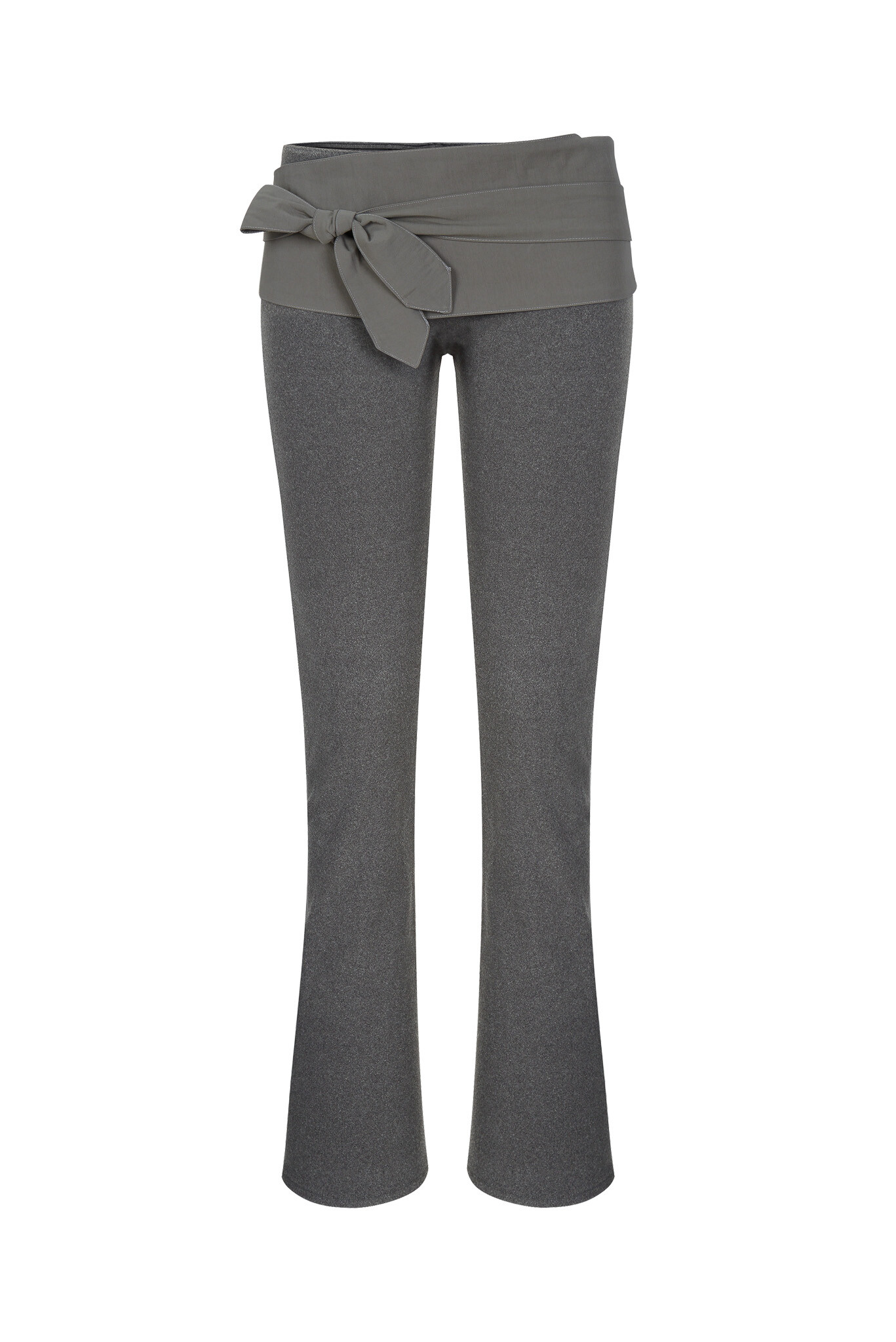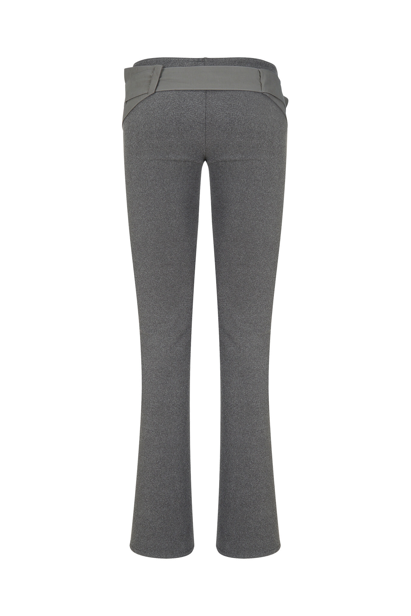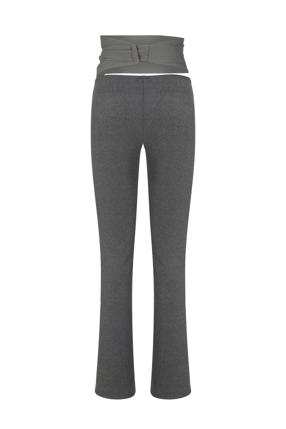 Legging pants made in a semi-flare fit. When worn alone, they can be tied below the waist like an apron. When layered inside another bottom, the waistband fits snugly, allowing only the belt to be exposed, offering a styling variation as intended.