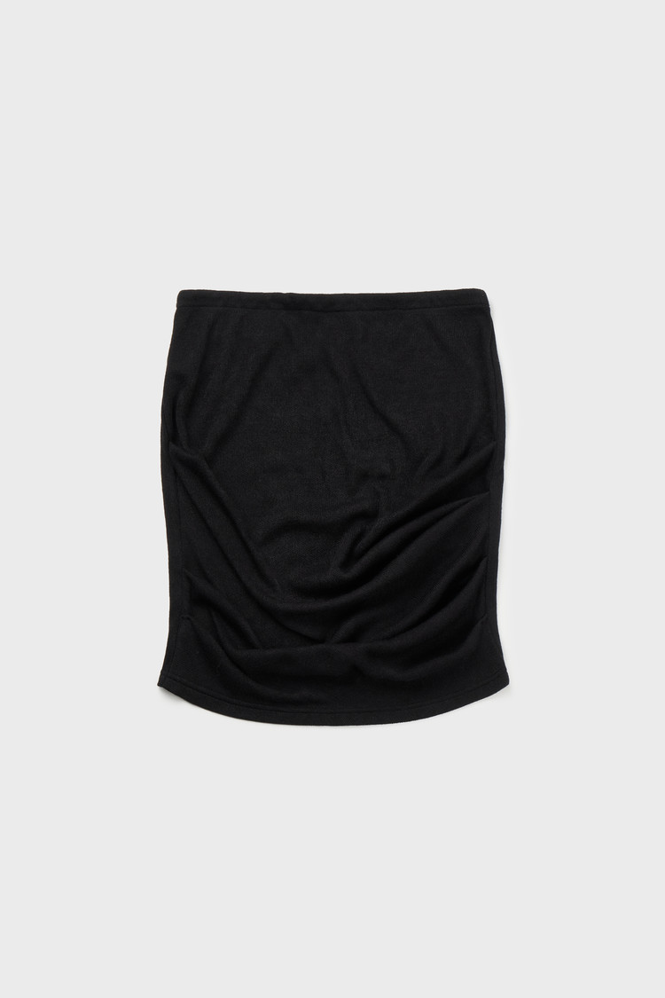 ∙ 니트 소재로 제작된 많은 볼륨의 셔링 디자인의 스커트로 앞면 부분이 자연스럽게 여러 겹의 주름으로 잡혀 풍성하고 페미넌한 실루엣으로 연출됩니다.